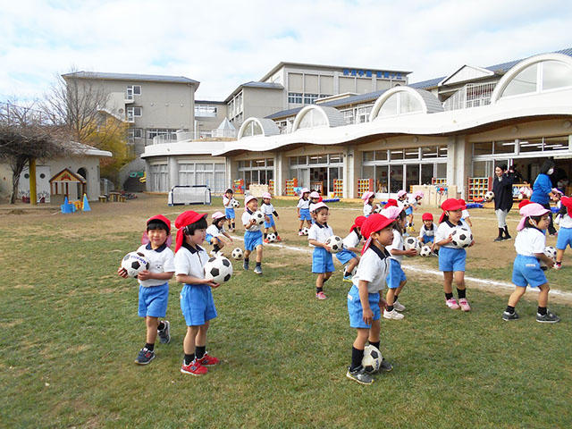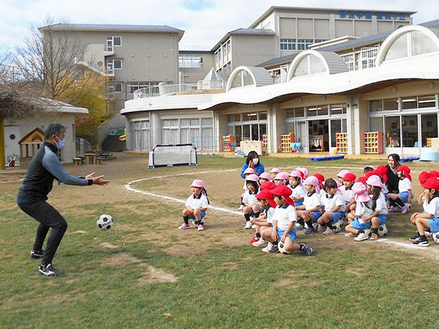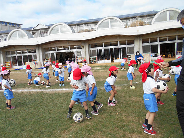 年少組PP1が、体育の先生とサッカーで遊びました。
