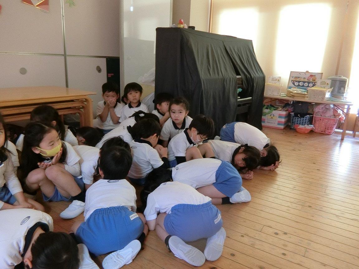 保育室は10分程の訓練の間、お休みの幼稚園のように静まり返っていました。