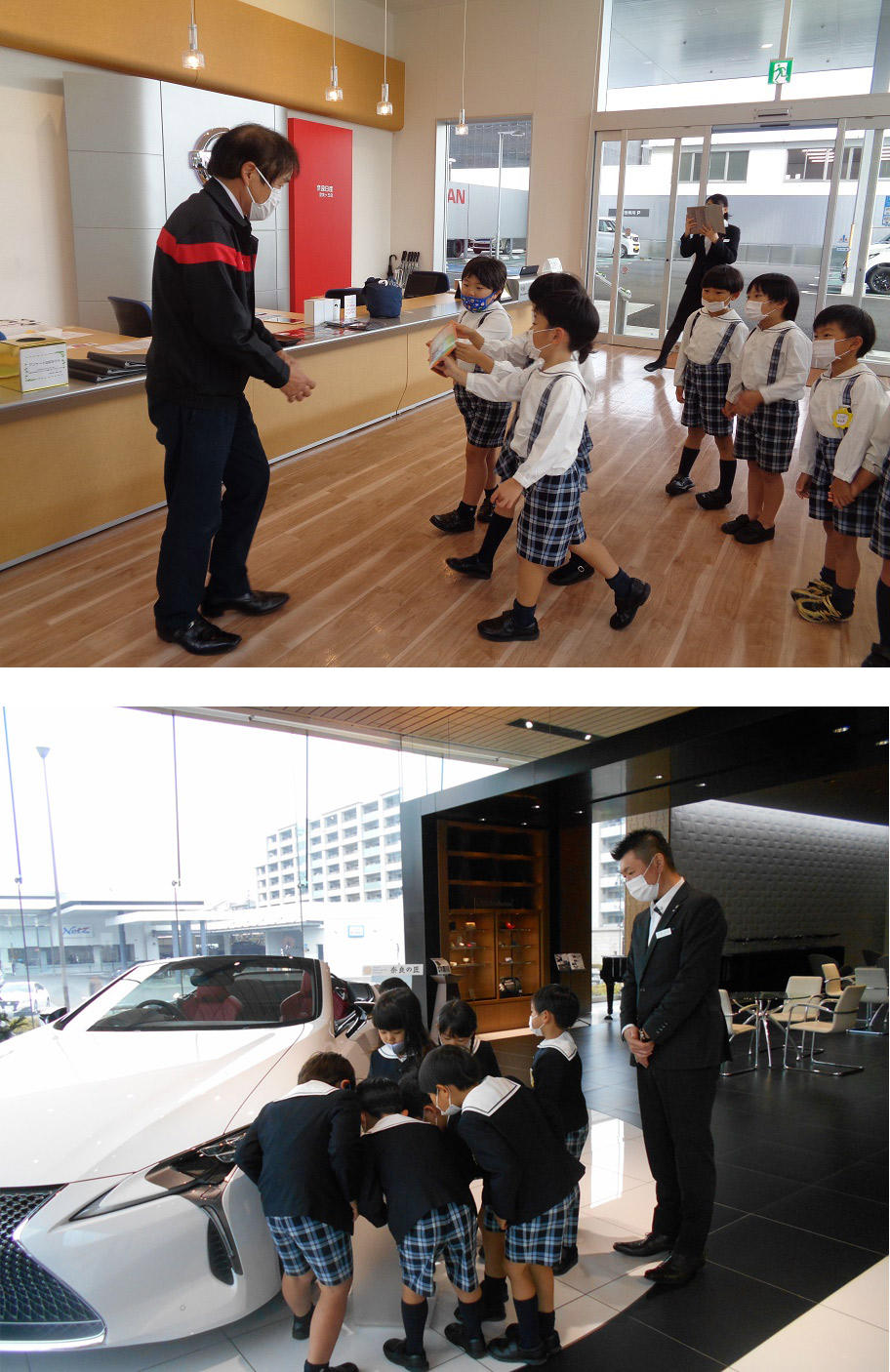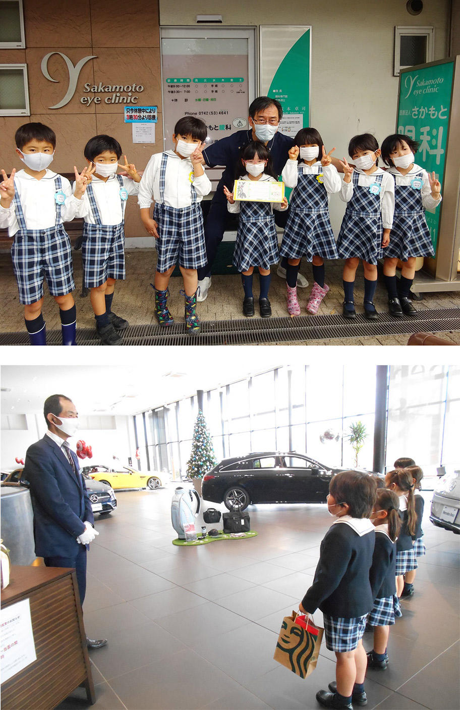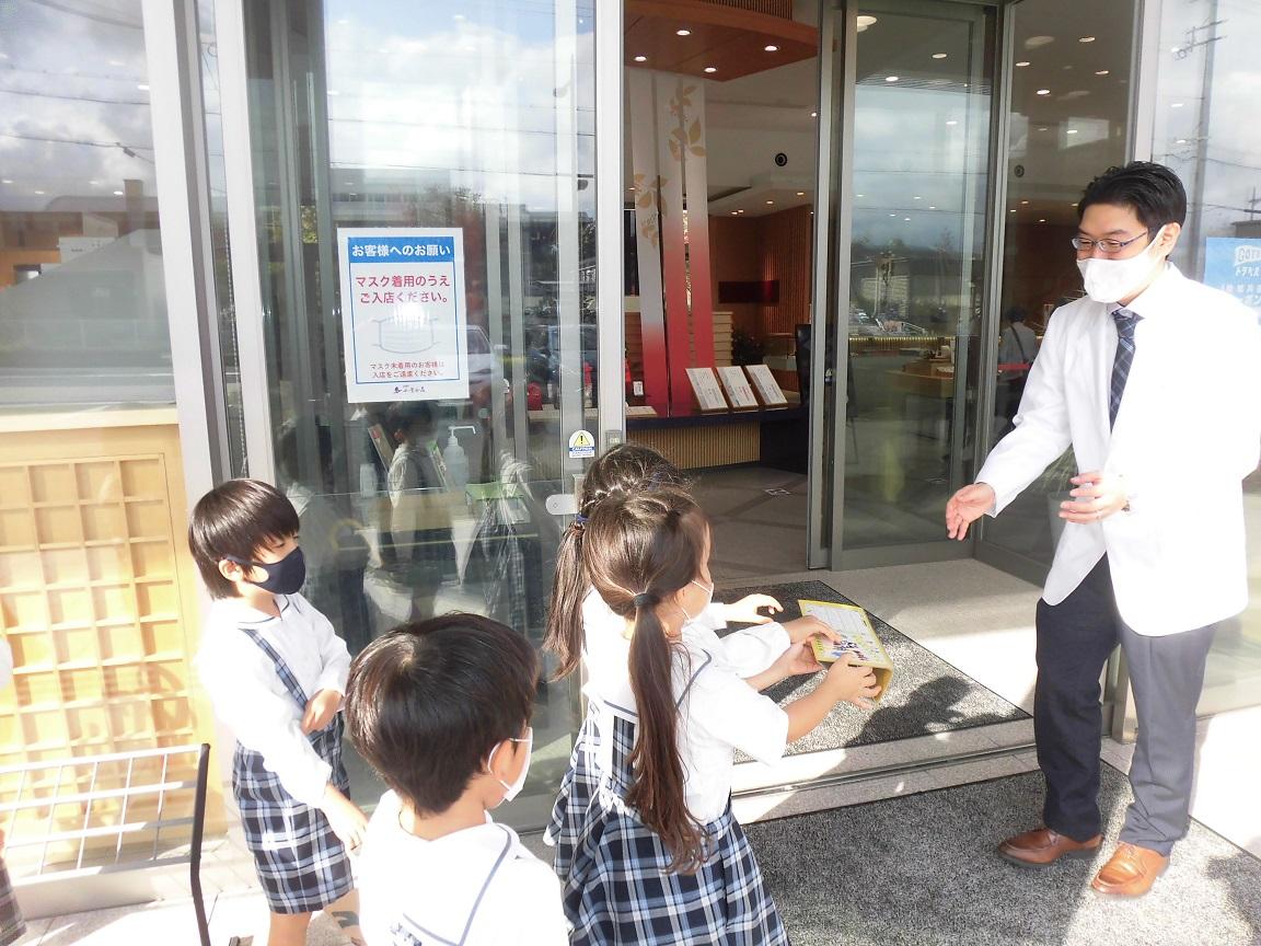 勤労感謝の日の第2弾として、周辺の薬局・病院や自動車屋さん、郵便局、喫茶店和菓子屋さんなどいろいろな商業施設を訪ねると皆さん、笑顔で迎えていただき温かい空気が流れました。お忙しい中対応して下さりありがとうございました。日頃の感謝を込めて子ども達手作りの来年のカレンダーをお渡ししました。