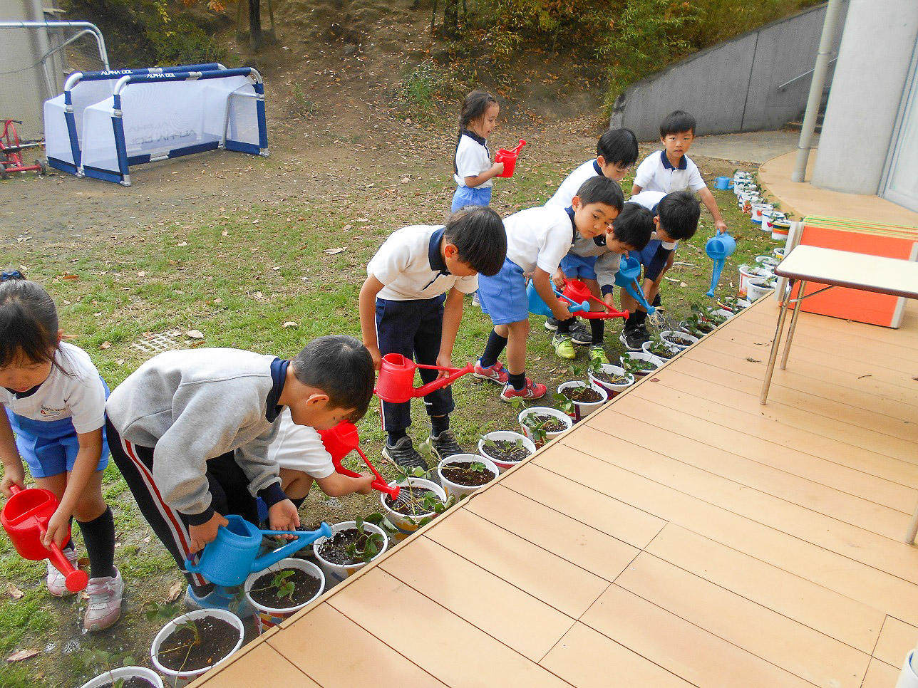 「甘くて美味しいいちごになあれ」と言いながらお水をあげました。