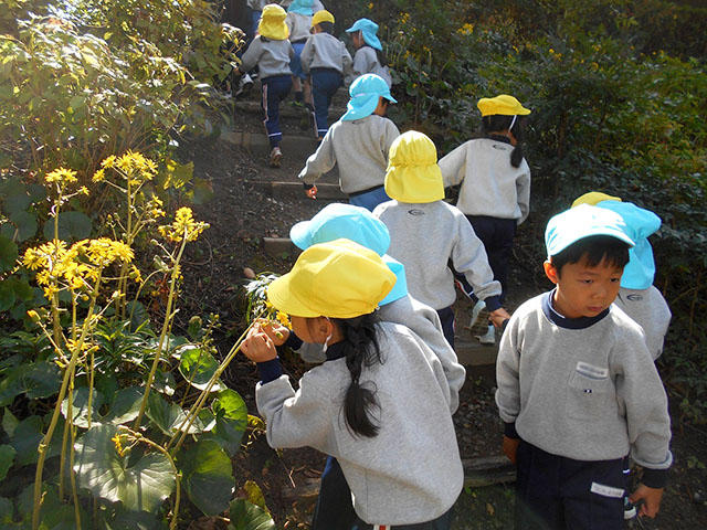 久保先生が「今度は何が見つかるか、美味しいものを見つけに行くぞ~」とわくわくするような言葉がけをして下さるので、子ども達は楽しそうに森の散策をしていきました。