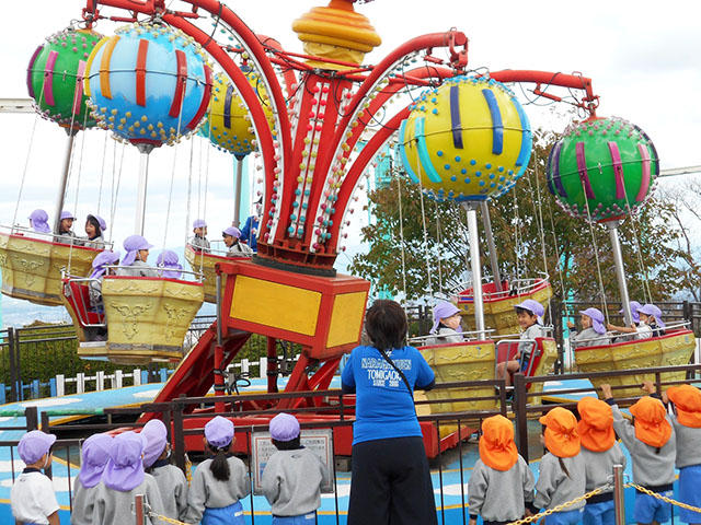 秋の遠足も晴天に恵まれ、生駒山上遊園地まで遠足に行きました。