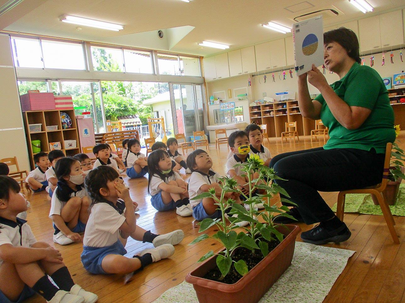 先生からは、「ひまわり」のお花の出てくる絵本を読んでもらいました。