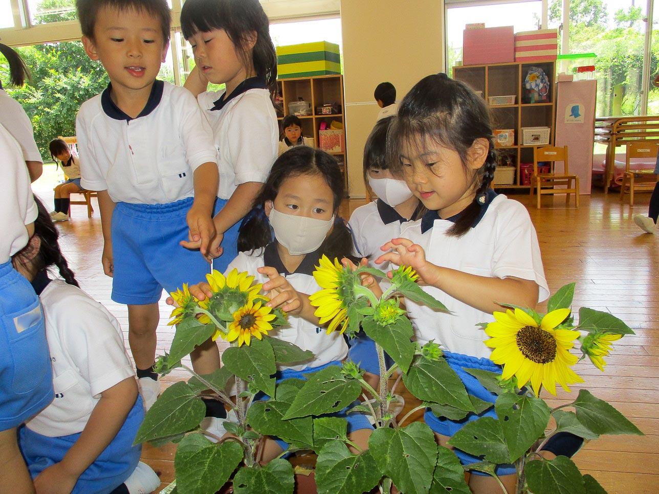 向日葵組が種から植えた「ひまわり」が可愛らしく咲きました。