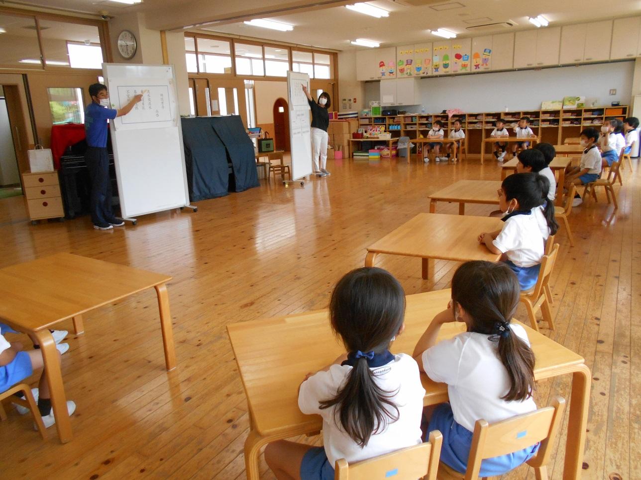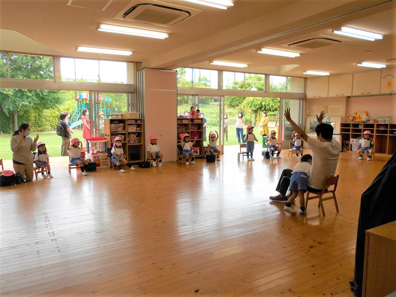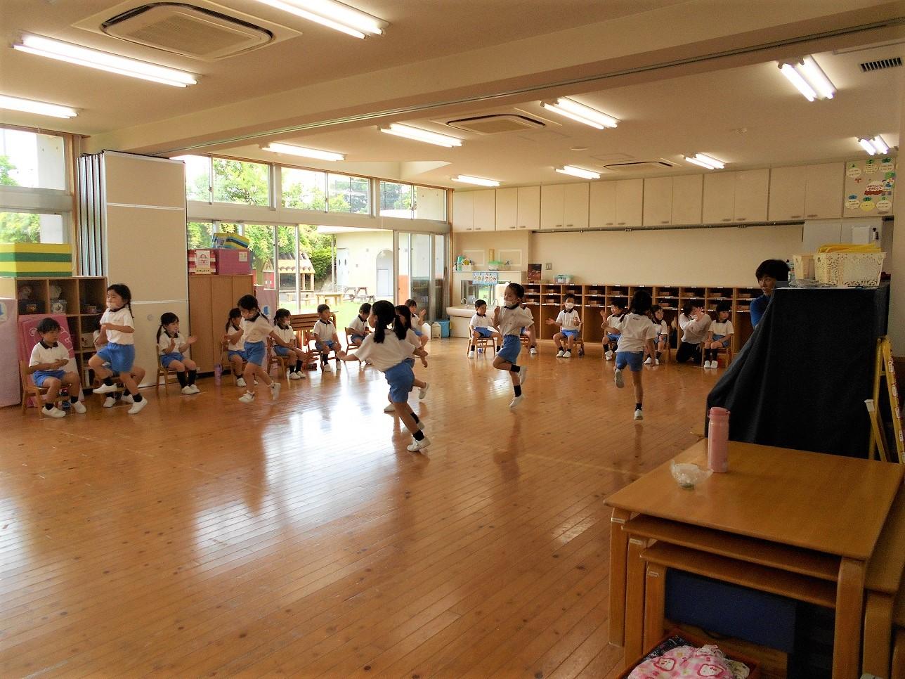 年中組では、リズム表現やお話を聞いて遊びました。2部屋続きの広い保育室で思い切り身体を動かして元気いっぱいな姿が見られました。