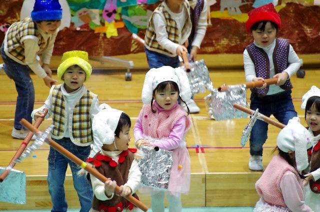 年少組は、今年は夏野菜を植えて育てたり、この間は苺も植えたりしていますので、一人一人お話と実際の体験がリンクして、よくわかって演じています。
