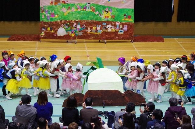 一番初めは、PP1おじいちゃん・おばあちゃん・孫・いぬ・ねこ・ねずみの役に扮しておおきなかぶをみんなで次々と抜いていく『おおきなかぶ』の劇をしました。