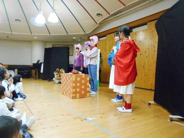 お話は、『あかずきんちゃんと3匹の子豚』のコラボした劇になっていました。