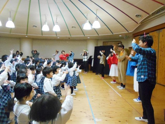 奈良学園大学の授業の一環で創作劇に取り組まれたので、幼稚園の子どもたちに見せに来て下さいました。