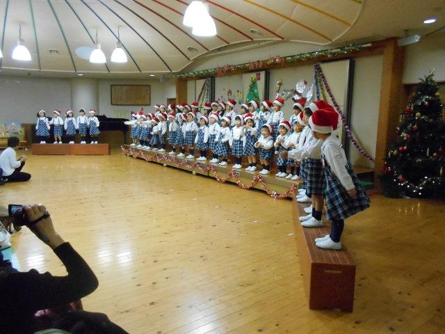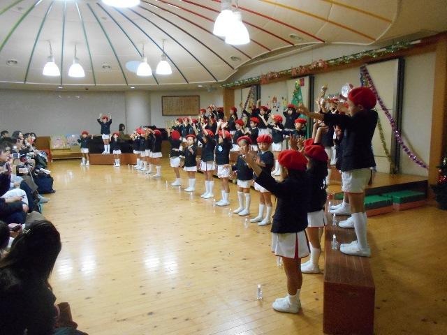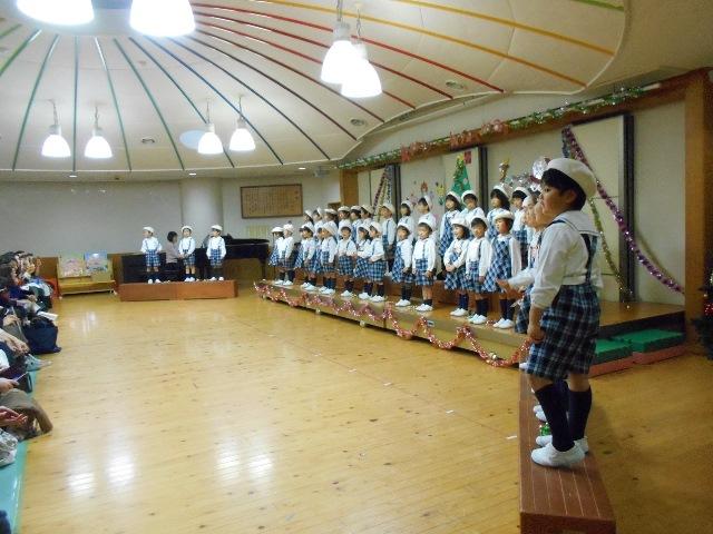 年少組は、さっても可愛いサンタさんになって「ゆきだるまのチャチャチャ」と「そうだったらいいのにな」を歌ったり踊ったりしました。元気いっぱいでとっても可愛いかったのて゛自然に笑顔になりました。
