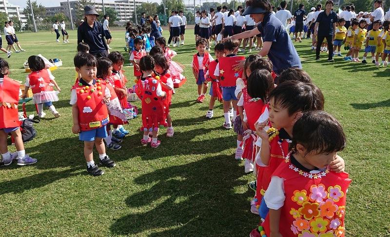 PP1PP2(年少児・年中児)は、P4生(小4年)と楽しい競技に参加しました。優しい導き方が素晴らしかったです。