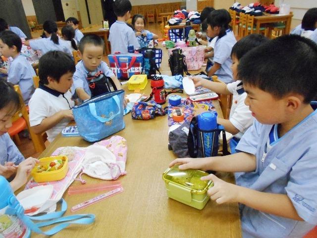 今日はPダイニングでPP2(年中児)とP2(小学校2年生)でお弁当を食べました。いつものペアの子どもたちで一緒に座って楽しく歓談しました。