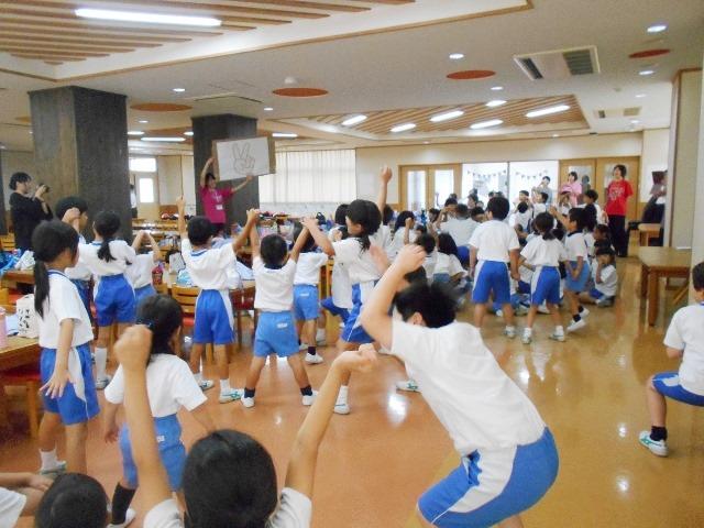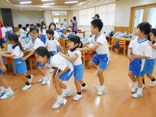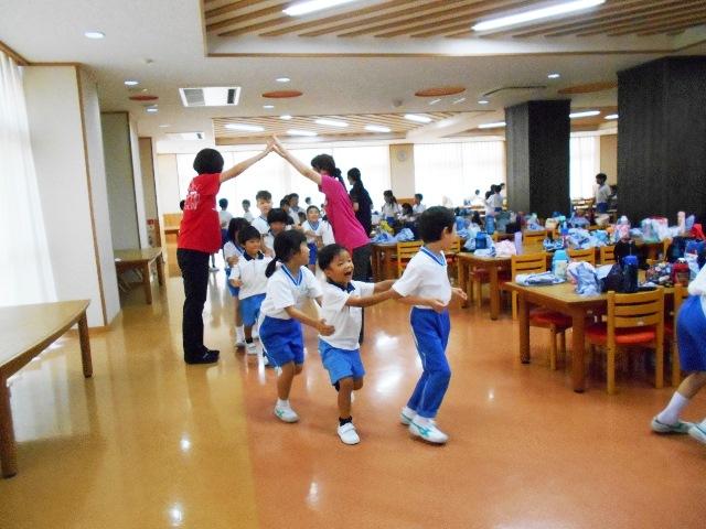 食事の後は、PP2・P2三人のグループで大型じゃんけんゲームをすると2年生の子どもたちがリードしているのでスムーズに展開していきました。2年生の子どもたちの成長が見られて年中児は受容される喜びを感じられたと思います。