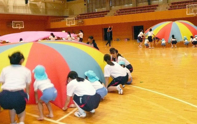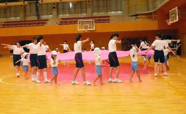 子どもたちは高校生のお姉さんと今日初めてアリーナの体育館で会いました。