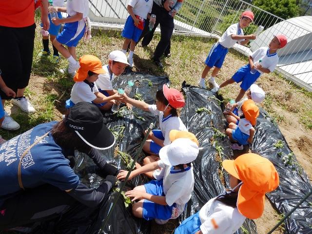 PP2・P2交流、サツマイモの苗を植えました