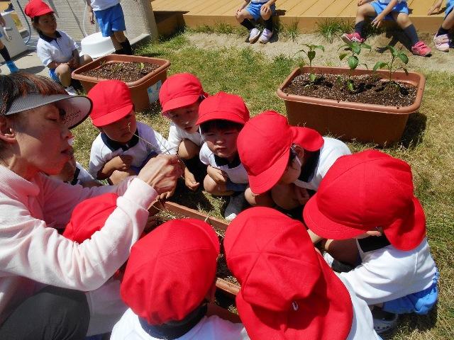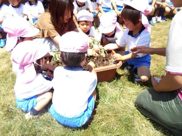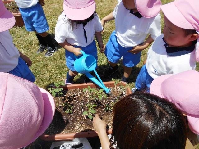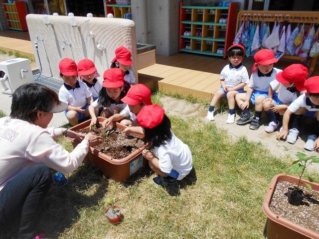 年少組が、夏野菜を植えました