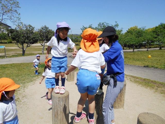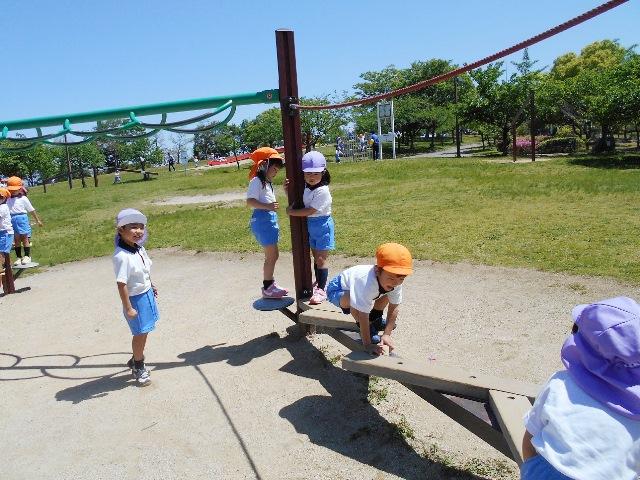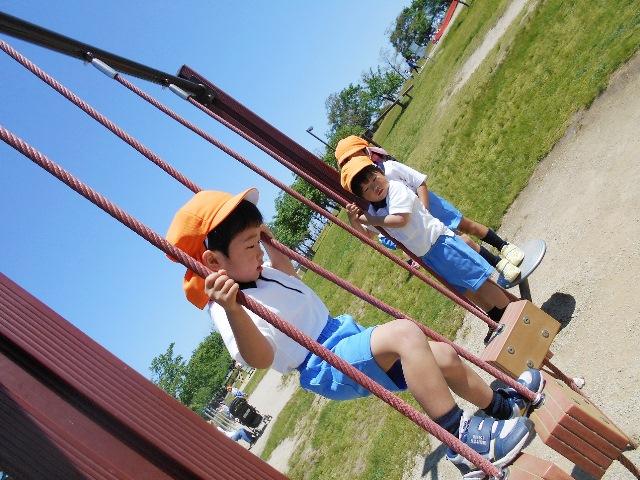 所々にあるアスレチックはすこしむつかしいものもありましたが、自分の出来るものを探してどんどん挑戦していきます。