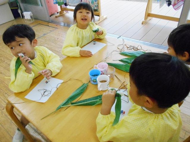 また、笹の葉に包まれた粽をほどきながら、「これを食べて、元気な強い子になろうね」とみんなで、美味しく食べました。