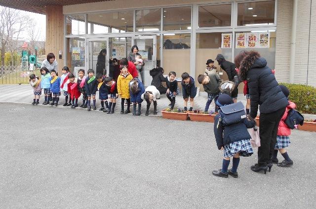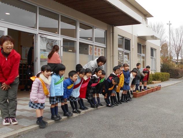 年中組は、とても、はりきって声を合わせて元気に挨拶をします。もうすぐ年長組になるという自覚が出てきたようです。挨拶される側の時も、元気に挨拶が出来るようになるのが、とても嬉しい成長です。自分の成長を実感出来る取り組みとなっています。