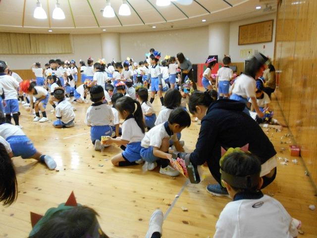 豆まきをした後は、みんなで、蒔いた豆を片付けます。綺麗に元通りになった遊戯室から安心してお部屋に帰って行けました。本当に良かったですね。