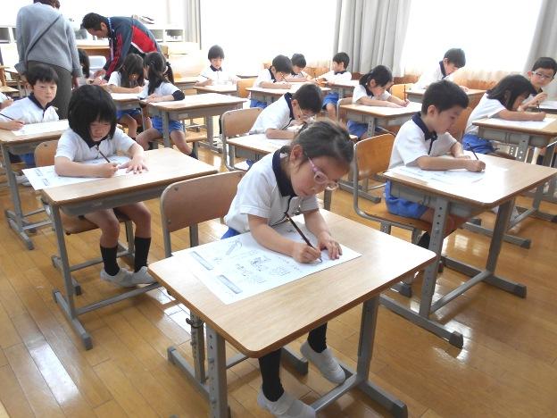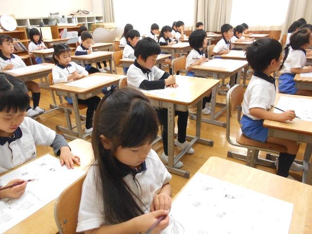 線からはみ出すことなくゆっくり丁寧に書くことが、とても楽しそうで、小学校の机に向かって、30分程度ですが、真剣に取り組むことが出来ました。