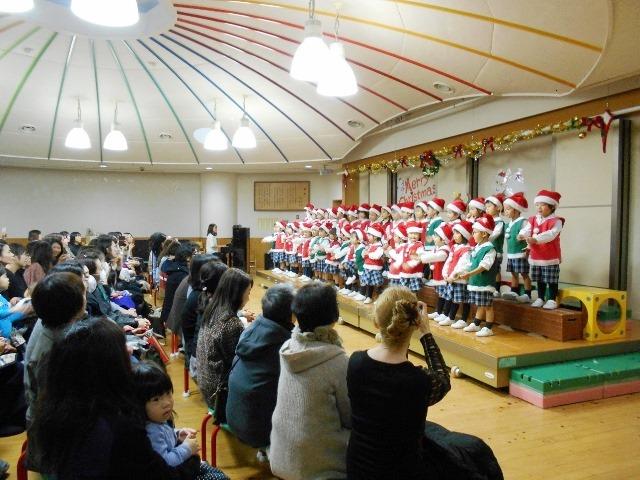 年少組は「サンタッタ・あわてんぼうのサンタクロース」年中組は「イブの夜はお楽しみ」「もくもくふわふわ」