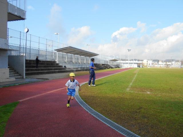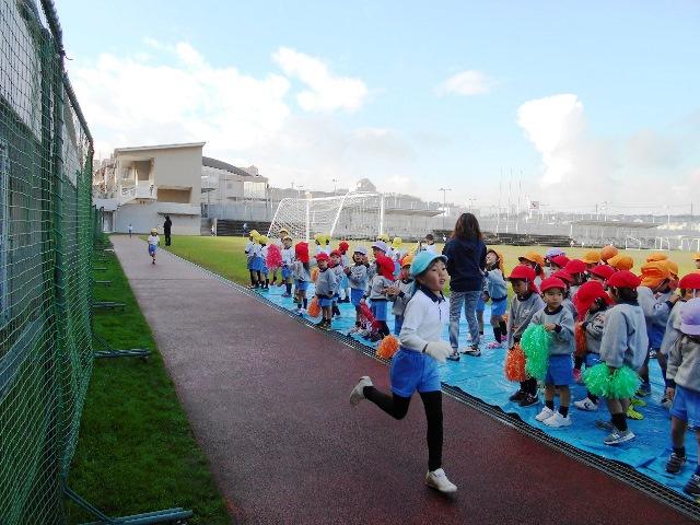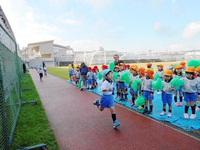 年少組は、1周・年中組は、1周半・年長組は、二周走りました。一周は、およそ500メートルあるそうです。