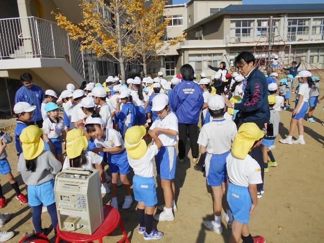 PP3P3の交流会で、今回は、小学校のグランドで3年生のお兄ちゃん、お姉ちゃんと一緒に、鬼ごっこやだるまさんが転んだ等の外遊びをしました。