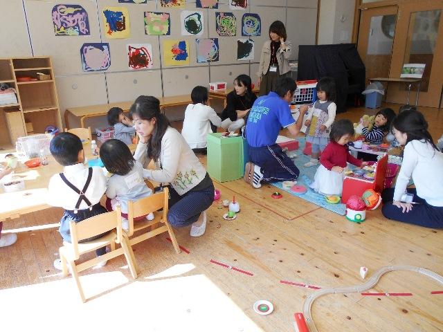 11月17日(土)にわくわくルーム二回目を行いました。たくさんの二歳児さんや二歳未満児さんが、遊びにきてくれました。いちご組に来てくれている子どもたちは、すっかり慣れて楽しく過ごしていましたが、二歳未満児さんたちも、おうちの方とゆったり過ごしてくれたようですね。