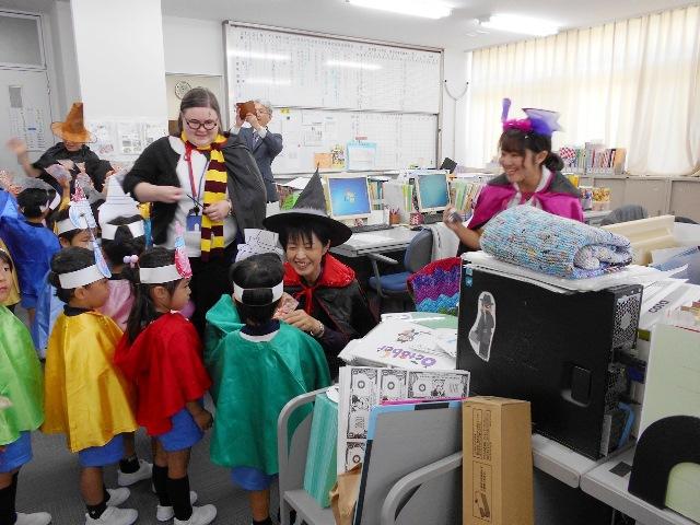 小学校の職員室に着くと『Happy Halloween♥』『Trick or Treat~!』と大きな声で、言ってみました。