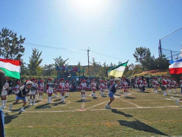年中組は、二回目のミニ運動会で、マーチングの年長組とのコラボも見事に決まりました。子どもたちの内に持っている力を存分に発揮していたと思います。それぞれのパートをしっかり演じ、集団行動が身につきました。この節目に、ひとりひとりが自信をつけ、さらに未来への一歩を進めていったように思います。