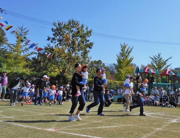 親子競技では、優しいおうちの方に、だっこやおんぶをしてもらって、親子共に嬉しい記憶にしていただけたことが、伝わってきました。