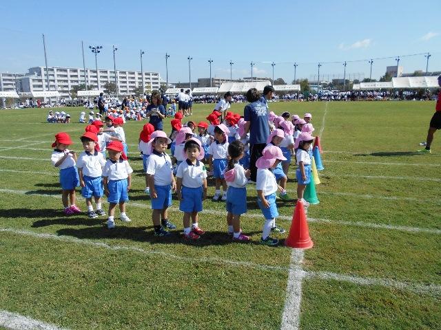 幼稚園内では、一人一人随分成長してきていますが、合同運動会では、大きなお兄ちゃんやお姉ちゃんに「可愛い!」と言ってもらっていました。そう言ってもらうとみんな、本当に可愛い笑顔を見せていました。