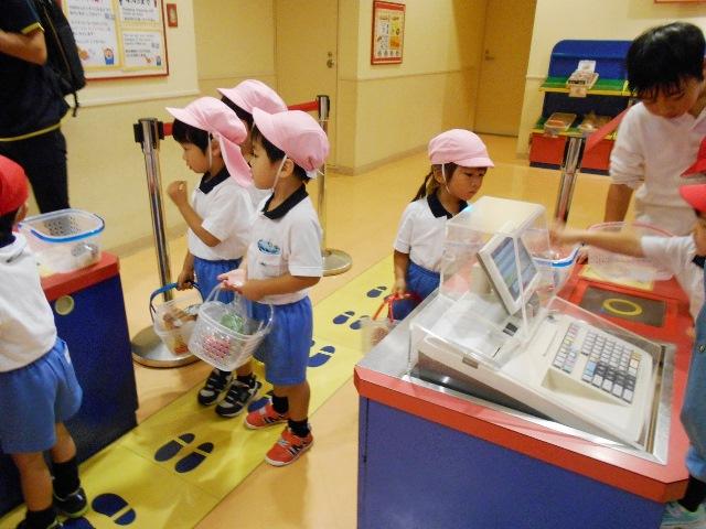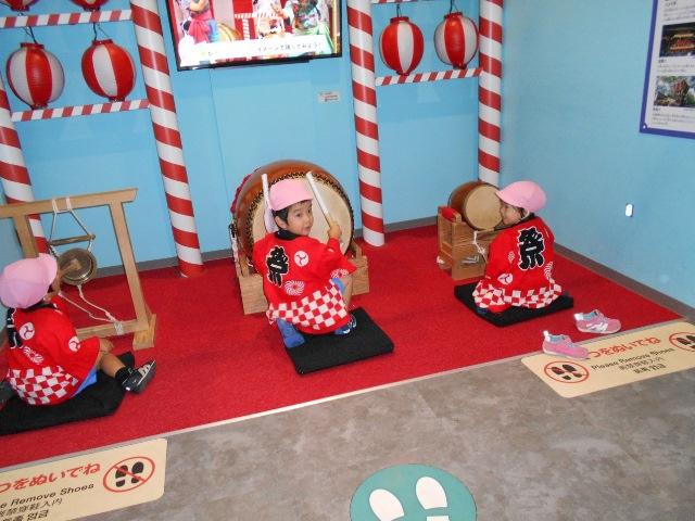 年少組は、お買い物ごっこや民族楽器などで楽しく遊びました。他の団体がいなくて、奈良学園幼稚園の遠足だけだったので、いろいろな体験が、ゆったり出来ました。