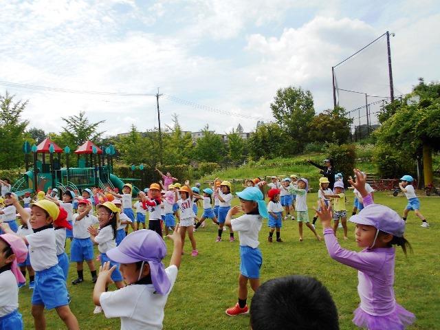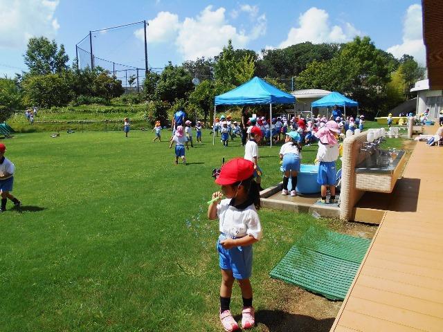 シャボン玉や水遊び、園庭のプールなどとともに、うきうきタイムも楽しみます。