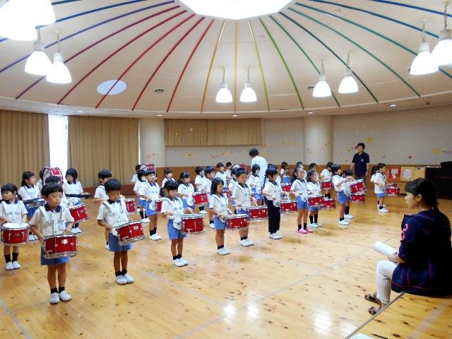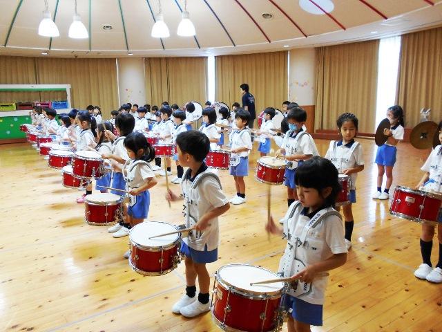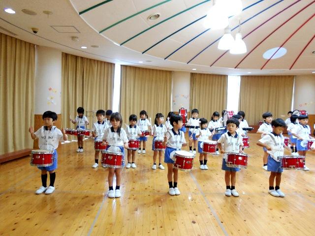 マーチング3 2018.07.17(火) Post マーチングの隊形移動を初めてしました。 「About face」と言って後ろを向く練習や複雑な場所移動をやってみました。 とてもむずかしかったけれど、音楽に合わせるとみんなの記憶力は抜群です。 楽器を持たずに、拍を数えながら移動しているときは、ちょっと難しそうな表情でしたが、楽器を持つと一変して、真剣なピリッとした表情に変わります。 かっこいい音楽と同じく、心もかっこよくなるようですよ。少しぐらい、楽器が重くても頑張れそうです。 まだまだ先ですが、披露できる日が楽しみですね。 « バルーン 七夕の会 »
