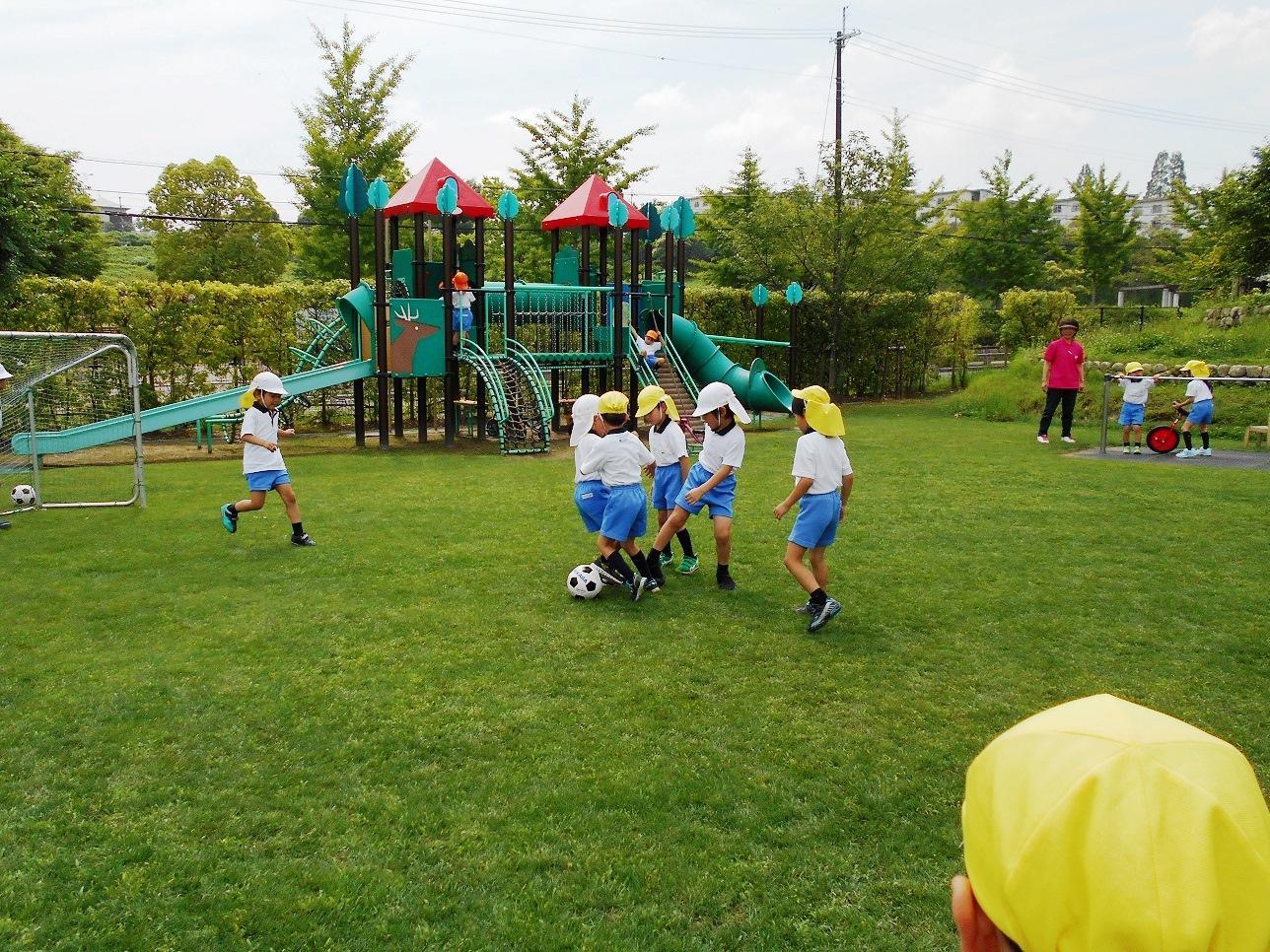 自由遊びの時間に、自分たちでチームを決めて、サッカーゲームが、始まりました。