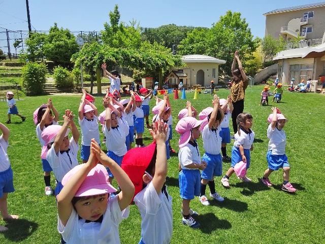 今日はとってもいいお天気で、年少組は運動遊びを思い切りしました。