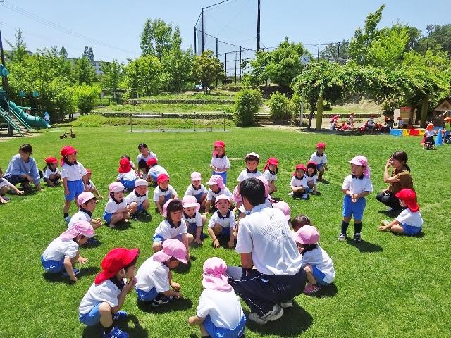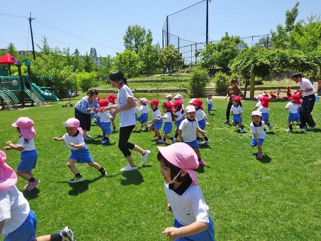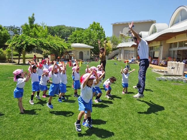 芝生の上を体操したり追いかけっこしたり、くまさんになったりして、身体全身を使って遊びました。
