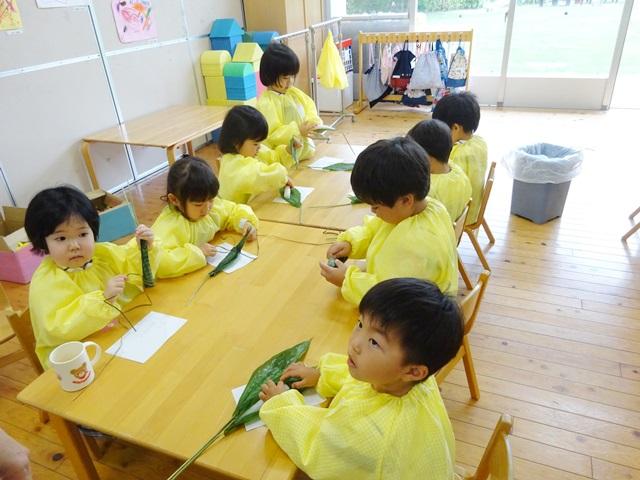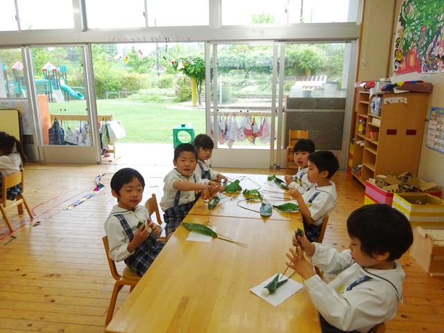 こどもの日のお祝い会を遊戯室でした後、お部屋で粽を食べました。