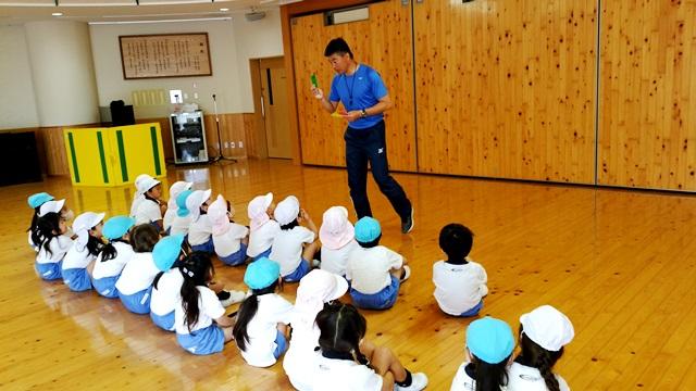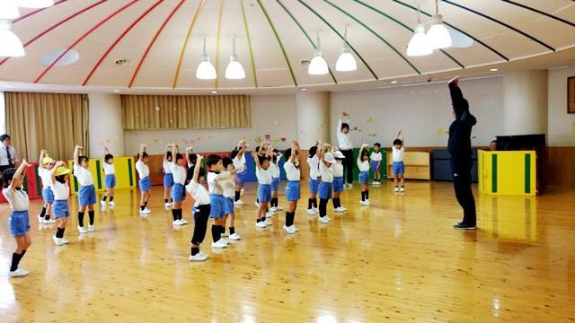 年長組になって初めての体育遊びでした。三笘先生は、「さすが、おおきい組さん。きっちり並んだり、集まったり出来るようになりました。」と言ってくださいました。
