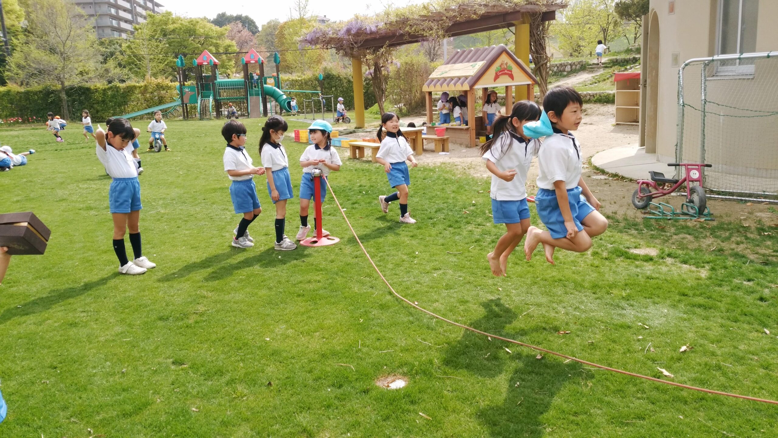 年長組・年中組は、運動遊び・おにごっこ・自然物の発見遊び・お花摘みなど自ら選んだ遊びを友達と関わりながら、思い切り遊んでいます。