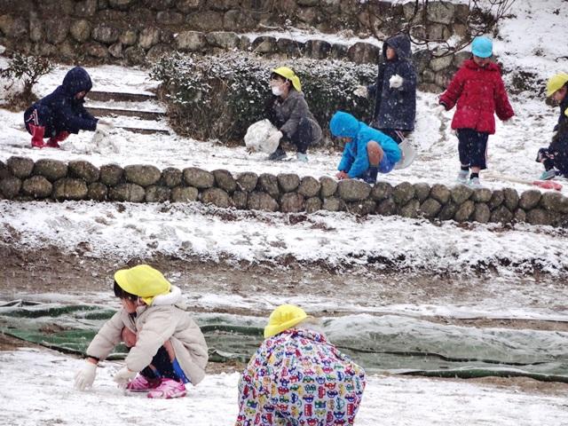 ほんの少しの雪でしたが、触れることができました。「手が真っ赤になるほど冷たい雪の感触」「一生懸命雪を集めて雪だるまをつくったこと」「先生と一緒に楽しんだ雪合戦」などは、驚きや感動と共に忘れることなく心にしっかりと刻まれたことだと思います。