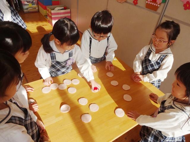 カルタや福笑い、神経衰弱などのお正月遊びを楽しむ姿もみられました。「友達と一緒だから楽しい」という思いがみんなの表情や仕草から伝わってきました。