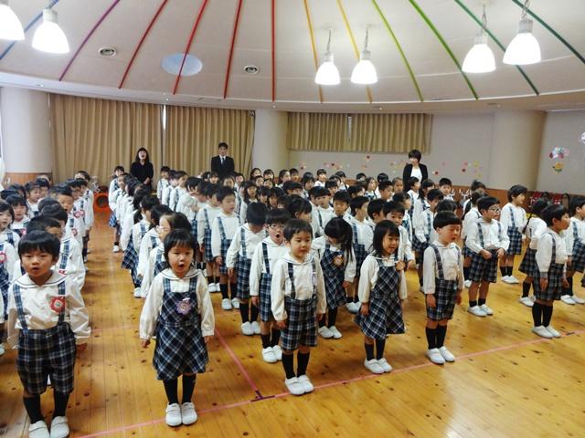 遊戯室に行くと、先に入室していた子どもたちが、姿勢を正し静かに待っていてくれました。「ワー凄い。誰もいないのかと思った。かっこいいね。お兄ちゃんお姉ちゃんになったね」と褒めると、益々背筋が伸びます。