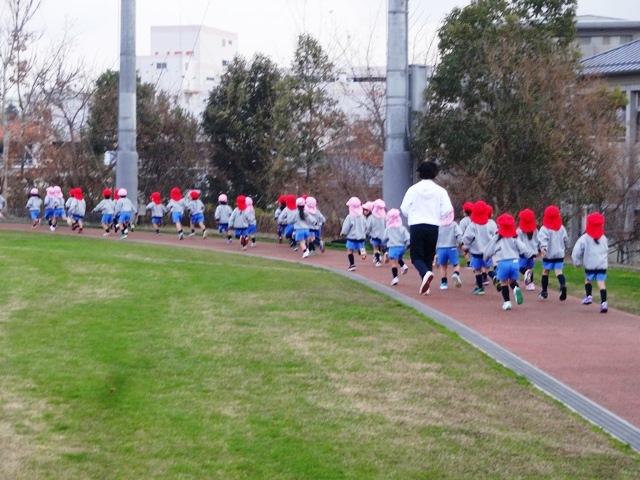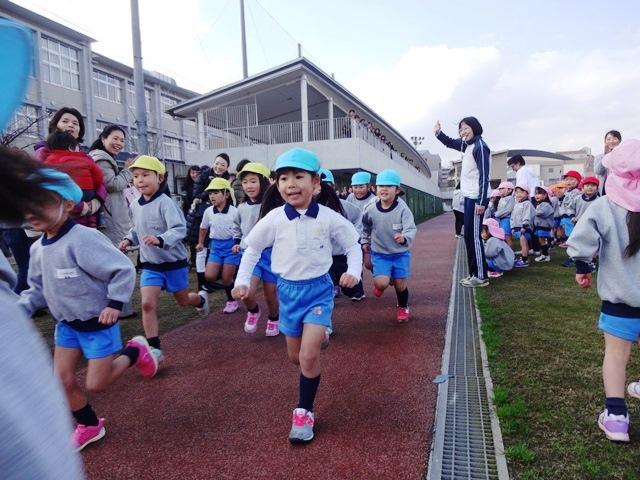 年少児はグランド1周480m、年中児は1周半720m、年中児は960mの距離を走ります。