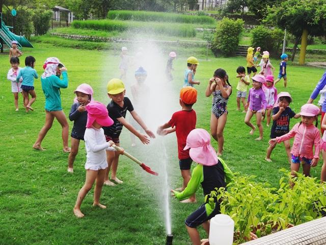 「虹ができたよ」「みてみて」子どもたちの会話が飛び交います。もったいないと思う水遊びですが、たくさんのことを学びました。体験を通して学ぶって大事ですね。