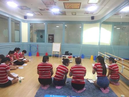 保育室の間仕切りはガラス素材で中の様子がよく見えます。巡回中、先生たちが集まって研修されている場面に出会いました。部屋の片面は一面鏡でとても広く感じます。歌を歌っている先生たちの姿から、歌の勉強会をされているのだなと思いました。中国の先生も日本の先生も、自身の保育力を高めるために学ぼうとする姿勢は同じですね。
