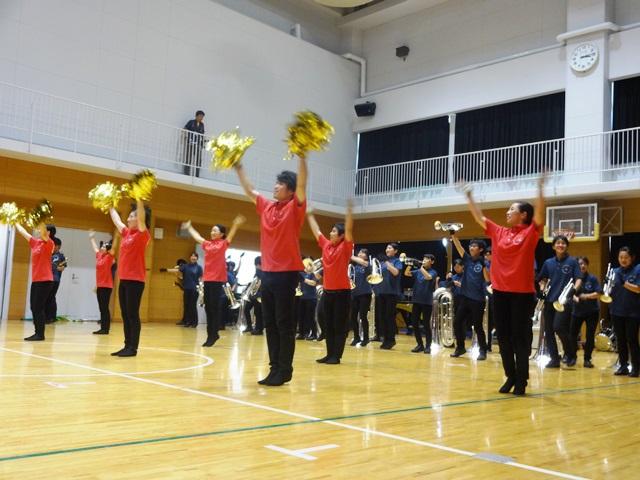 まずは、小学校の体育館に集まり、同法人内の奈良学園大学マーチングバンド部の演奏からスタートです。音と共に笑顔が随所に弾ける素晴らしい演奏・演技は観客を魅了しました。始めて来ていただいたのは3年前。みんなを感動させる素晴らしいパフォーマンスは、「また聴きたい」につながり、今年も実現しました。子どもたちも体でリズムを感じながら、一生懸命耳と心を傾けていました。