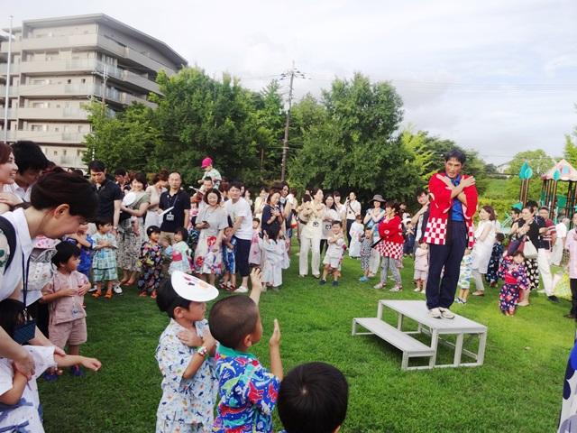 楽しむうちに夕方になり、園庭に集まったみんなで盆踊り! 子どもたちはもちろん、保護者の皆様も笑顔いっぱいでした。